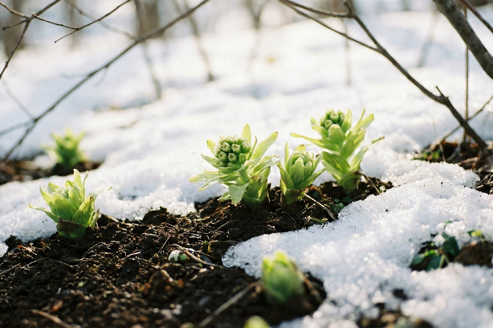 那須高原を渡る風が、残雪の白を割って、名もなき芽を吹き出す。